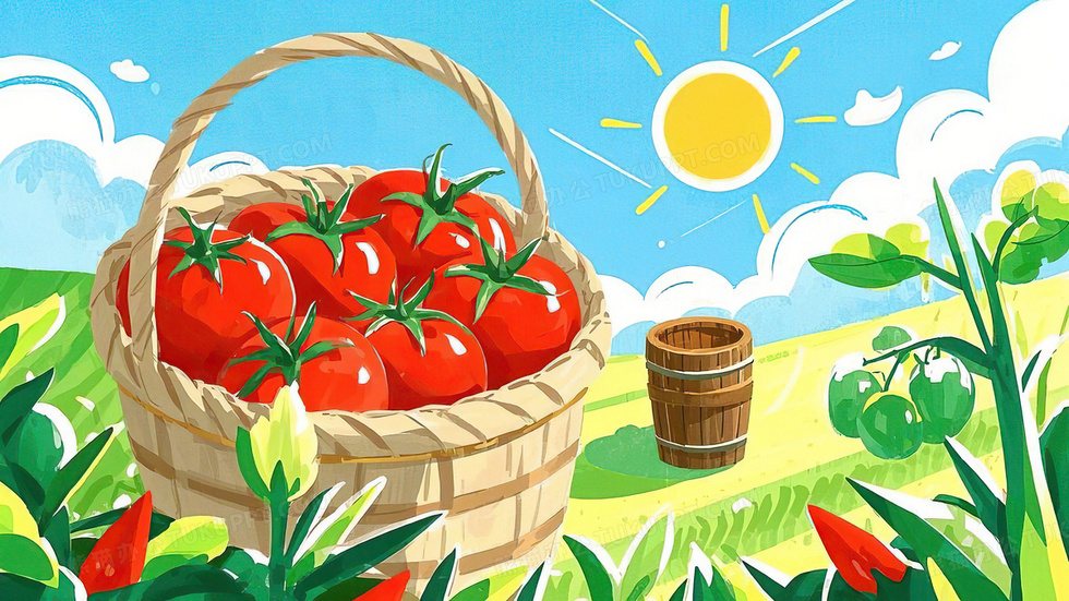 本作品内容为西红柿番茄蔬菜健康食物插画, 格式为 jpg, 大小5 MB, 图片尺寸为3072 x 1728, 源文件无水印, 欢迎使用熊猫办公。 如认为平台内容涉嫌侵权,可通过邮件:tousu@tukuppt.com提出书面通知,我们将及时处理。