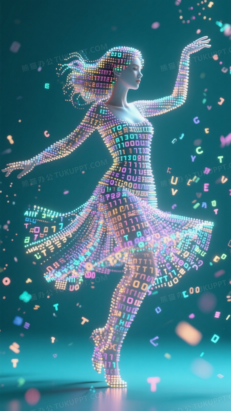 本作品内容为3D高精细建模用密集的相互连接的极其微小的ascii字符光点随机的流动融合成跳舞的美女, 格式为 jpg, 大小1 MB, 图片尺寸为936 x 1664, 源文件无水印, 欢迎使用熊猫办公。 如认为平台内容涉嫌侵权,可通过邮件:tousu@tukuppt.com提出书面通知,我们将及时处理。