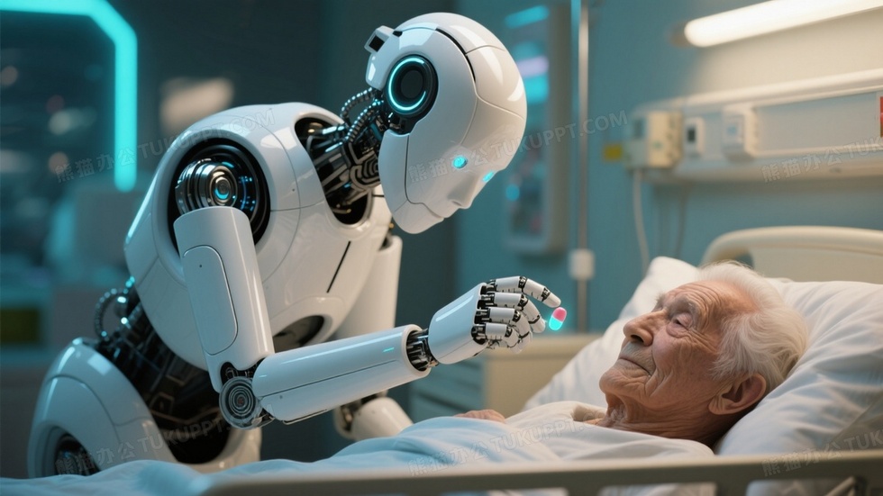 本作品内容为流线型白色机器人俯身照顾卧床老人, 格式为 jpg, 大小1 MB, 图片尺寸为1664 x 936, 源文件无水印, 欢迎使用熊猫办公。 如认为平台内容涉嫌侵权,可通过邮件:tousu@tukuppt.com提出书面通知,我们将及时处理。