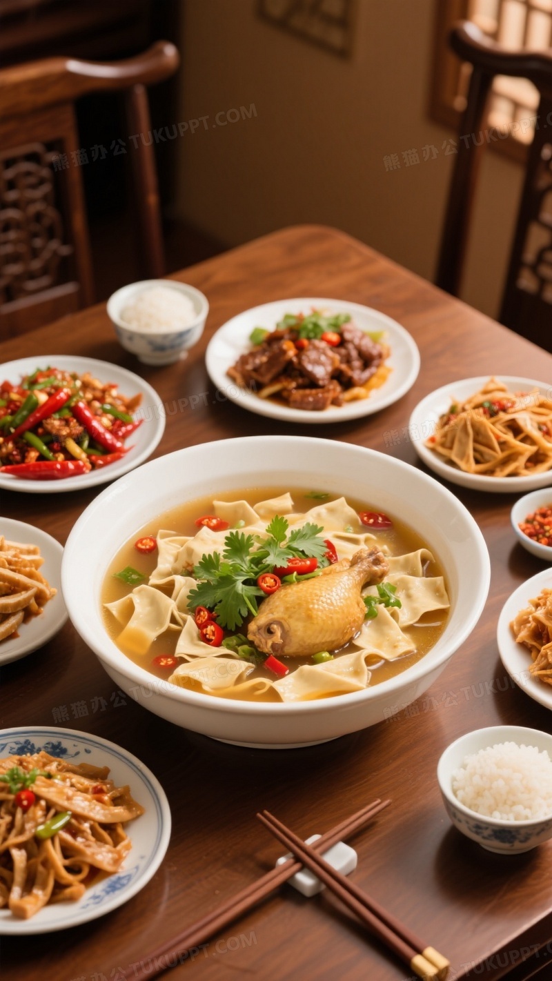 本作品内容为这幅图呈现中式风格的餐桌场景, 格式为 jpg, 大小1 MB, 图片尺寸为936 x 1664, 源文件无水印, 欢迎使用熊猫办公。 如认为平台内容涉嫌侵权,可通过邮件:tousu@tukuppt.com提出书面通知,我们将及时处理。
