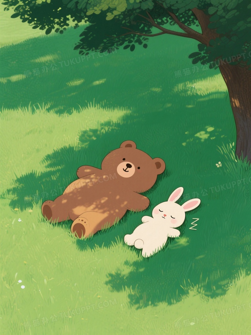本作品内容为一只小熊躺在草地上旁边并排躺着相对小一点一只小兔子, 格式为 jpg, 大小1 MB, 图片尺寸为1104 x 1472, 源文件无水印, 欢迎使用熊猫办公。 如认为平台内容涉嫌侵权,可通过邮件:tousu@tukuppt.com提出书面通知,我们将及时处理。