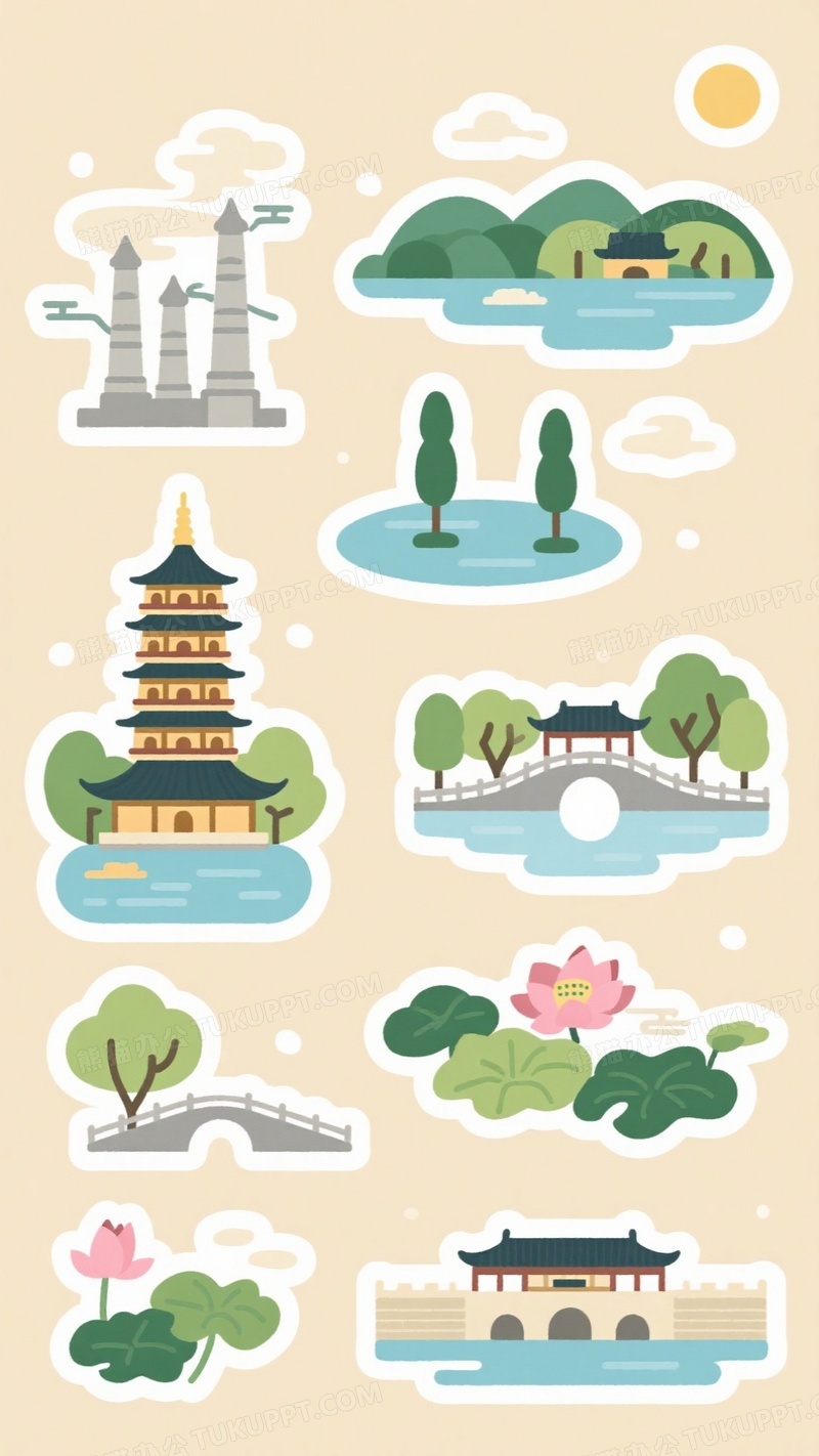 本作品内容为杭州文创贴纸扁平插画风, 格式为 jpg, 大小1 MB, 图片尺寸为936 x 1664, 源文件无水印, 欢迎使用熊猫办公。 如认为平台内容涉嫌侵权,可通过邮件:tousu@tukuppt.com提出书面通知,我们将及时处理。