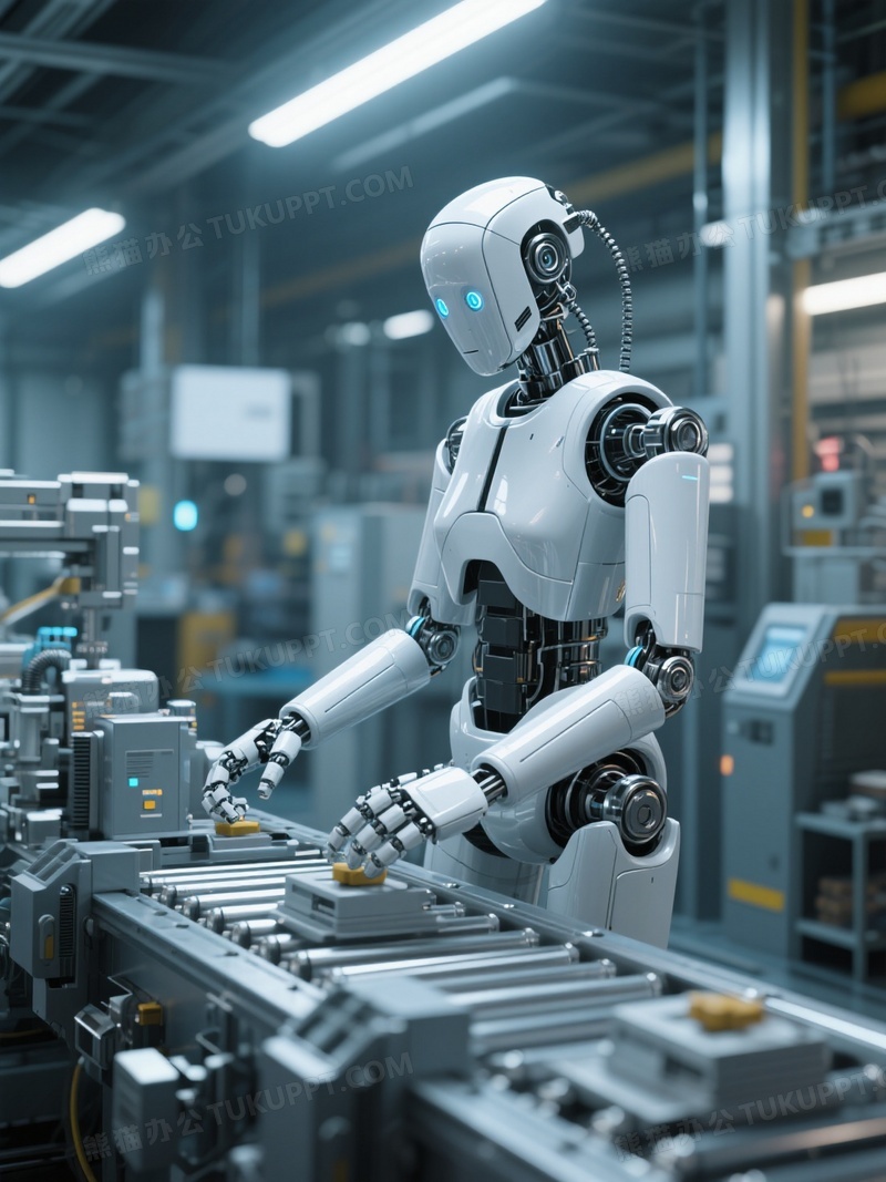 本作品内容为一个银白色机器人站在车间流水线上忙碌工作着, 格式为 jpg, 大小1 MB, 图片尺寸为1104 x 1472, 源文件无水印, 欢迎使用熊猫办公。 如认为平台内容涉嫌侵权,可通过邮件:tousu@tukuppt.com提出书面通知,我们将及时处理。