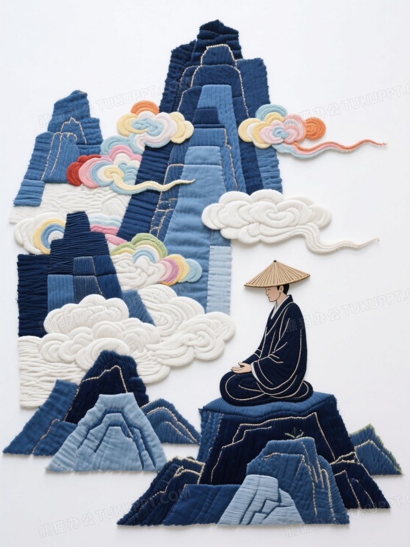 本作品内容为刺绣一个由布料拼接而成的山水画, 格式为 jpg, 大小1 MB, 图片尺寸为1104 x 1472, 源文件无水印, 欢迎使用熊猫办公。 如认为平台内容涉嫌侵权,可通过邮件:tousu@tukuppt.com提出书面通知,我们将及时处理。