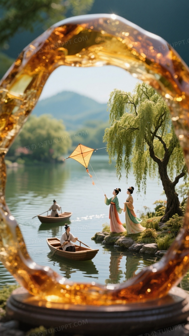 本作品内容为微型景观巨大的琥珀内封存着一对唐代佳人在柳树旁的河边放风筝, 格式为 jpg, 大小1 MB, 图片尺寸为936 x 1664, 源文件无水印, 欢迎使用熊猫办公。 如认为平台内容涉嫌侵权,可通过邮件:tousu@tukuppt.com提出书面通知,我们将及时处理。