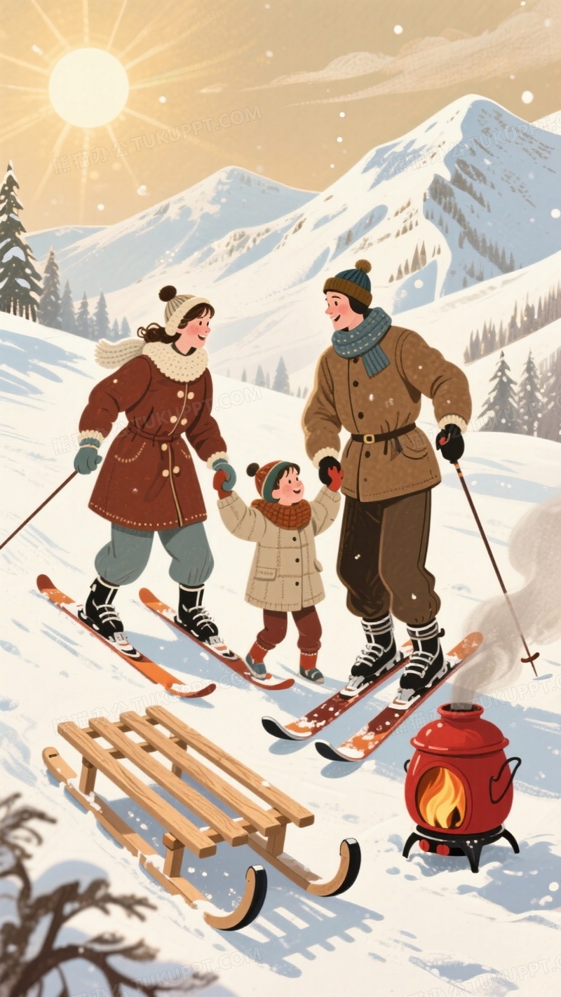 本作品内容为复古风格滑雪插画一家人穿着复古的滑雪服, 格式为 jpg, 大小1 MB, 图片尺寸为936 x 1664, 源文件无水印, 欢迎使用熊猫办公。 如认为平台内容涉嫌侵权,可通过邮件:tousu@tukuppt.com提出书面通知,我们将及时处理。