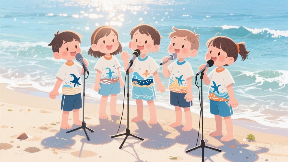 本作品内容为高清的卡通插画风格可爱儿童合唱团在海边沙滩上合唱, 格式为 jpg, 大小1 MB, 图片尺寸为1664 x 936, 源文件无水印, 欢迎使用熊猫办公。 如认为平台内容涉嫌侵权,可通过邮件:tousu@tukuppt.com提出书面通知,我们将及时处理。