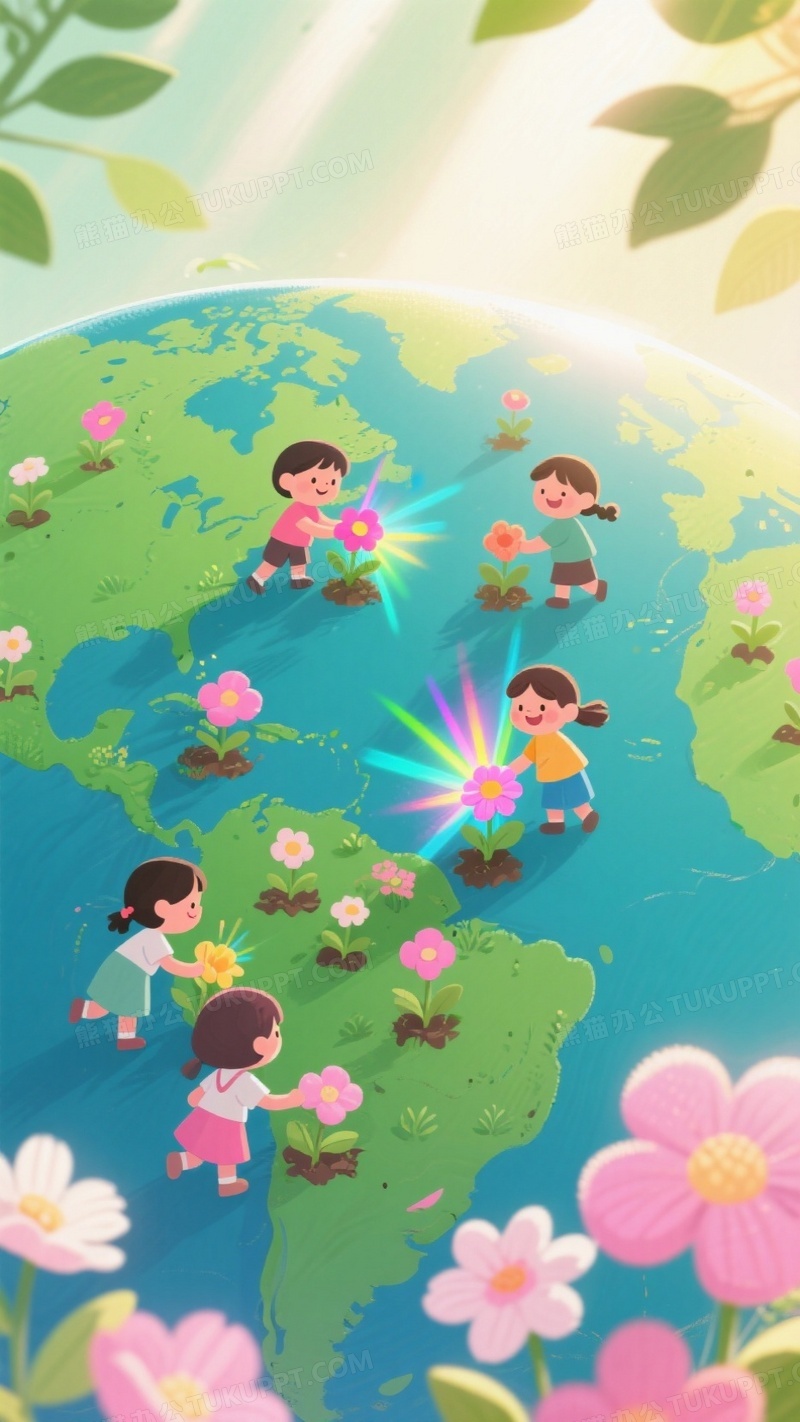 本作品内容为环保卡通插画小朋友们在地球表面种植花朵, 格式为 jpg, 大小1 MB, 图片尺寸为936 x 1664, 源文件无水印, 欢迎使用熊猫办公。 如认为平台内容涉嫌侵权,可通过邮件:tousu@tukuppt.com提出书面通知,我们将及时处理。