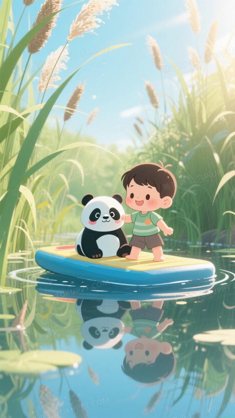 本作品内容为以卡通插画描绘夏天可爱的小孩和一只小熊猫在水上的浮板上, 格式为 jpg, 大小1 MB, 图片尺寸为936 x 1664, 源文件无水印, 欢迎使用熊猫办公。 如认为平台内容涉嫌侵权,可通过邮件:tousu@tukuppt.com提出书面通知,我们将及时处理。
