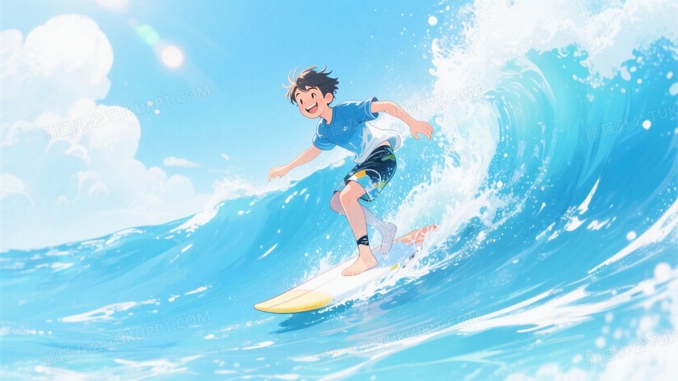 本作品内容为夏天冲浪插画帅气的冲浪少年带着自信笑容, 格式为 jpg, 大小1 MB, 图片尺寸为1664 x 936, 源文件无水印, 欢迎使用熊猫办公。 如认为平台内容涉嫌侵权,可通过邮件:tousu@tukuppt.com提出书面通知,我们将及时处理。