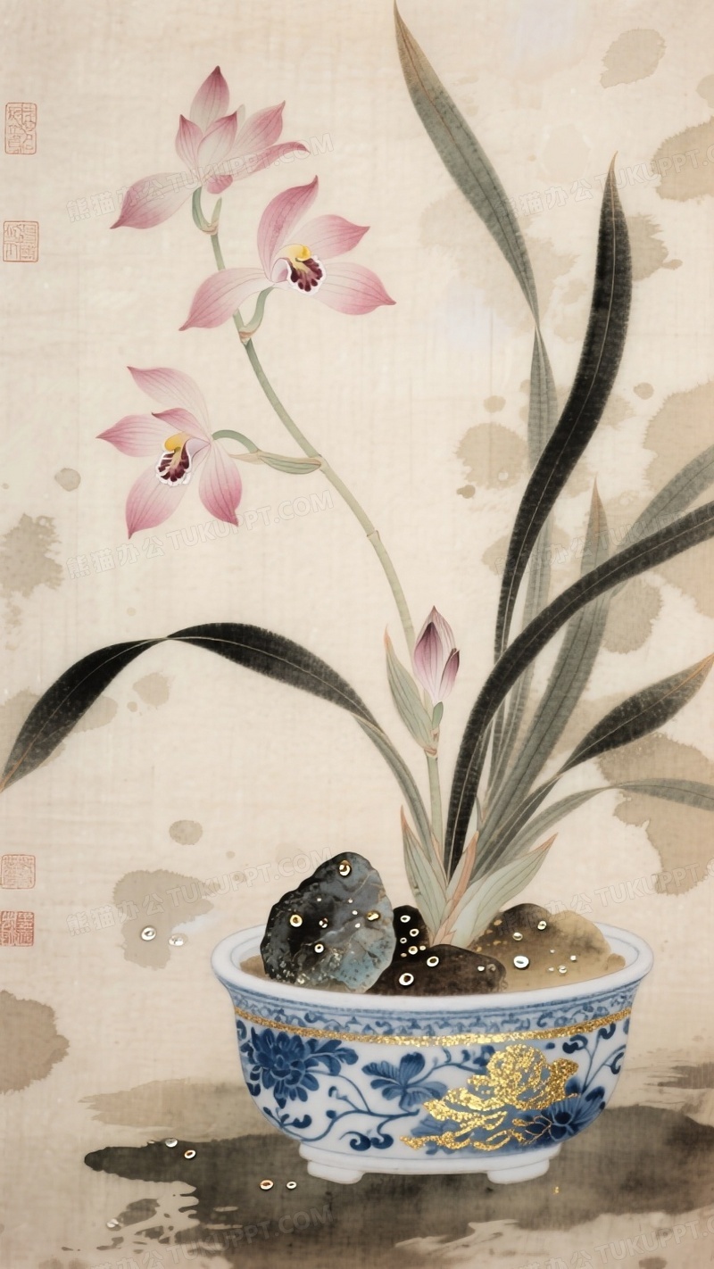 本作品内容为工笔绢本兰花图淡墨勾勒细长叶脉, 格式为 jpg, 大小1 MB, 图片尺寸为936 x 1664, 源文件无水印, 欢迎使用熊猫办公。 如认为平台内容涉嫌侵权,可通过邮件:tousu@tukuppt.com提出书面通知,我们将及时处理。