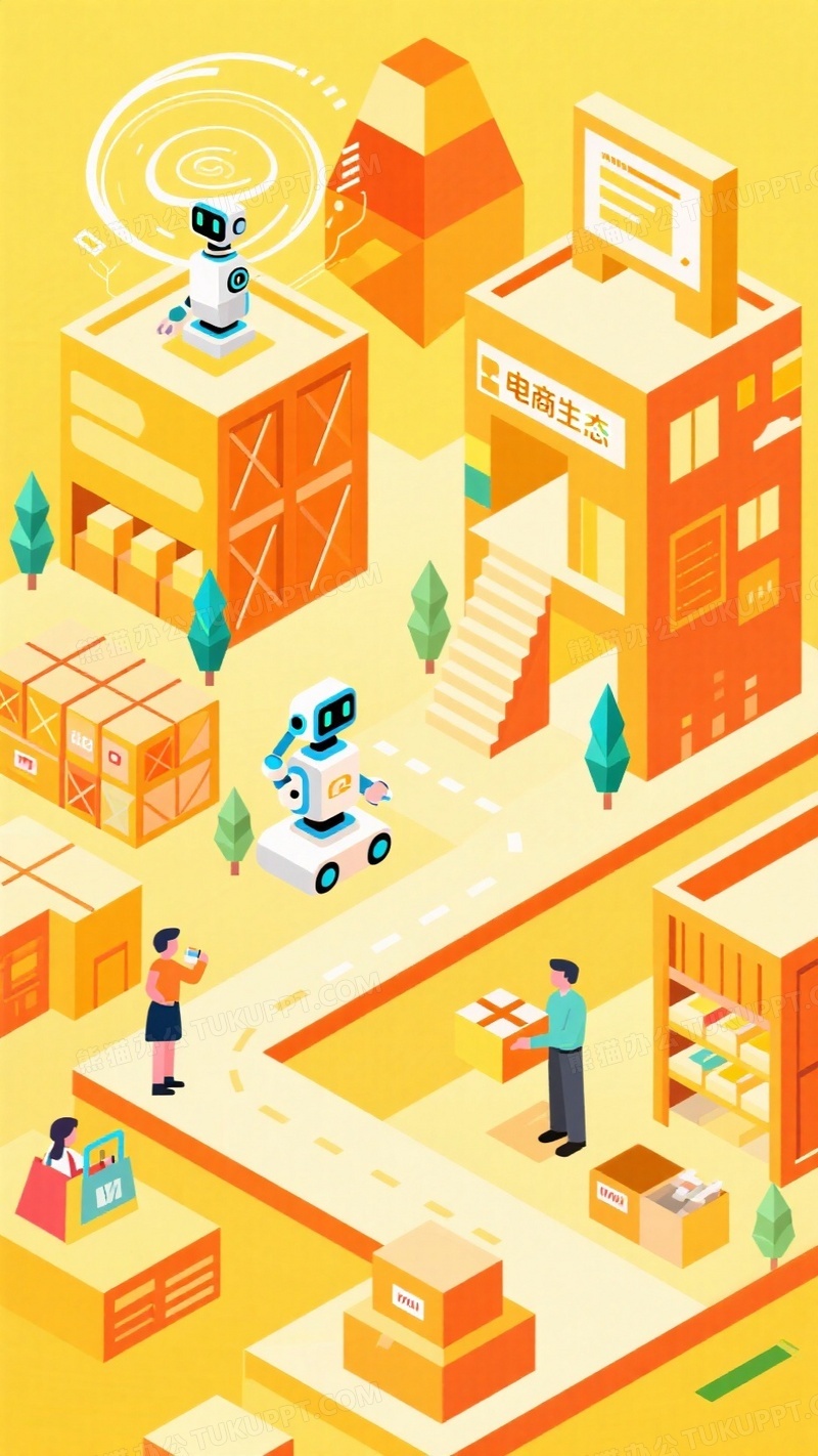 本作品内容为全景式电商生态插画从仓储机器人到用户签收的全链路场景, 格式为 jpg, 大小1 MB, 图片尺寸为936 x 1664, 源文件无水印, 欢迎使用熊猫办公。 如认为平台内容涉嫌侵权,可通过邮件:tousu@tukuppt.com提出书面通知,我们将及时处理。