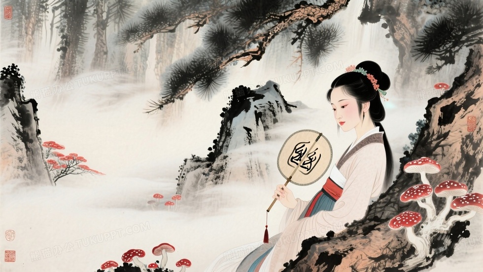 本作品内容为绢本设色水墨森林汉服少女执团扇倚坐卧龙松, 格式为 jpg, 大小1 MB, 图片尺寸为1664 x 936, 源文件无水印, 欢迎使用熊猫办公。 如认为平台内容涉嫌侵权,可通过邮件:tousu@tukuppt.com提出书面通知,我们将及时处理。