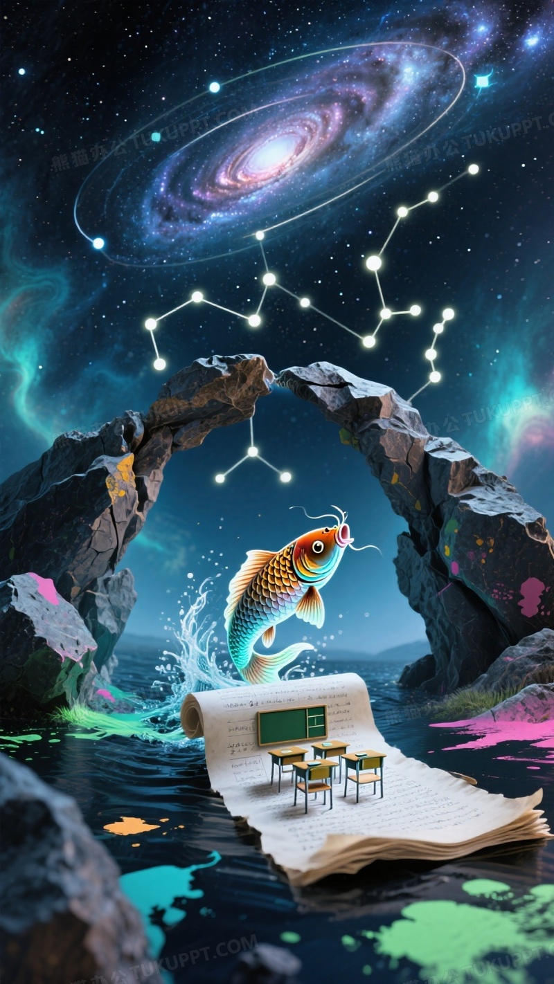 本作品内容为超现实星空场景银河化作鲤鱼跃过星座连成的龙门, 格式为 jpg, 大小1 MB, 图片尺寸为936 x 1664, 源文件无水印, 欢迎使用熊猫办公。 如认为平台内容涉嫌侵权,可通过邮件:tousu@tukuppt.com提出书面通知,我们将及时处理。