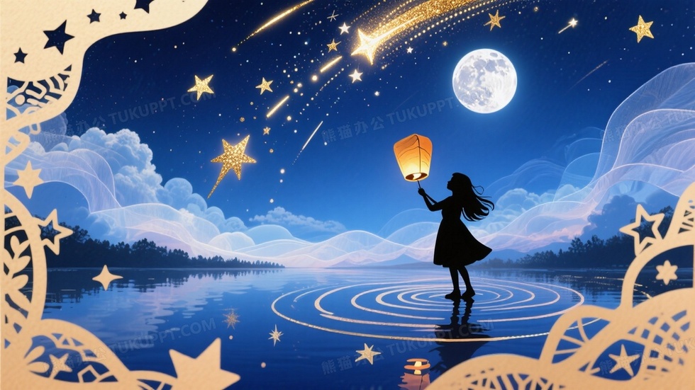 首页 > 插画 > 科技艺术 > 其他 > 剪纸叠层艺术流星雨烫金流星穿透靛蓝夜空