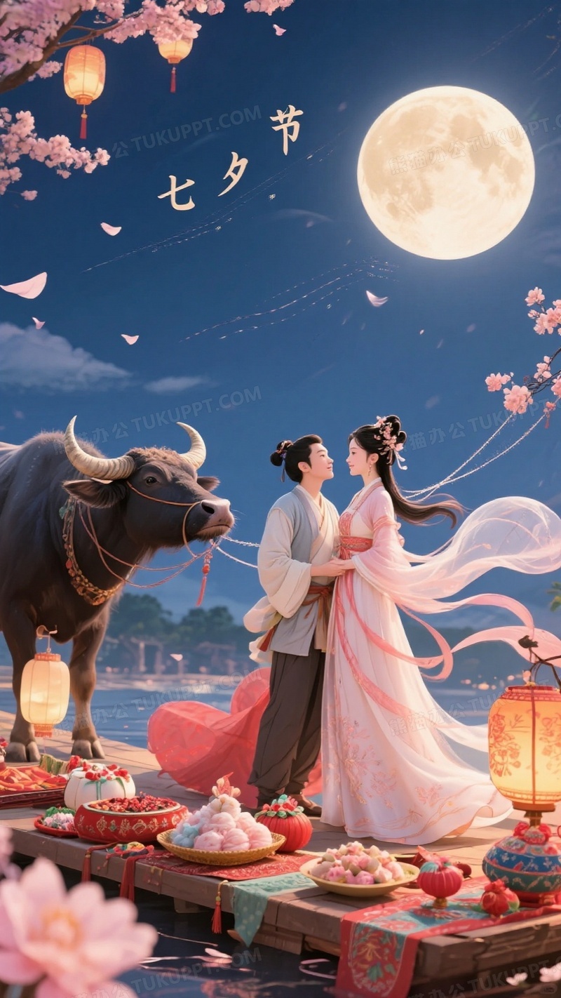 本作品内容为请帮我生成七夕节传说中牛郎织女相会的日子, 格式为 jpg, 大小1 MB, 图片尺寸为936 x 1664, 源文件无水印, 欢迎使用熊猫办公。 如认为平台内容涉嫌侵权,可通过邮件:tousu@tukuppt.com提出书面通知,我们将及时处理。