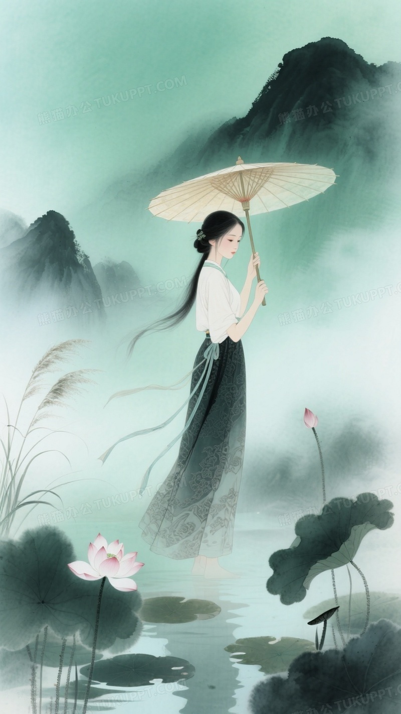 本作品内容为东方水墨弥散风场景女孩执油纸伞伫立荷花池畔, 格式为 jpg, 大小1 MB, 图片尺寸为936 x 1664, 源文件无水印, 欢迎使用熊猫办公。 如认为平台内容涉嫌侵权,可通过邮件:tousu@tukuppt.com提出书面通知,我们将及时处理。