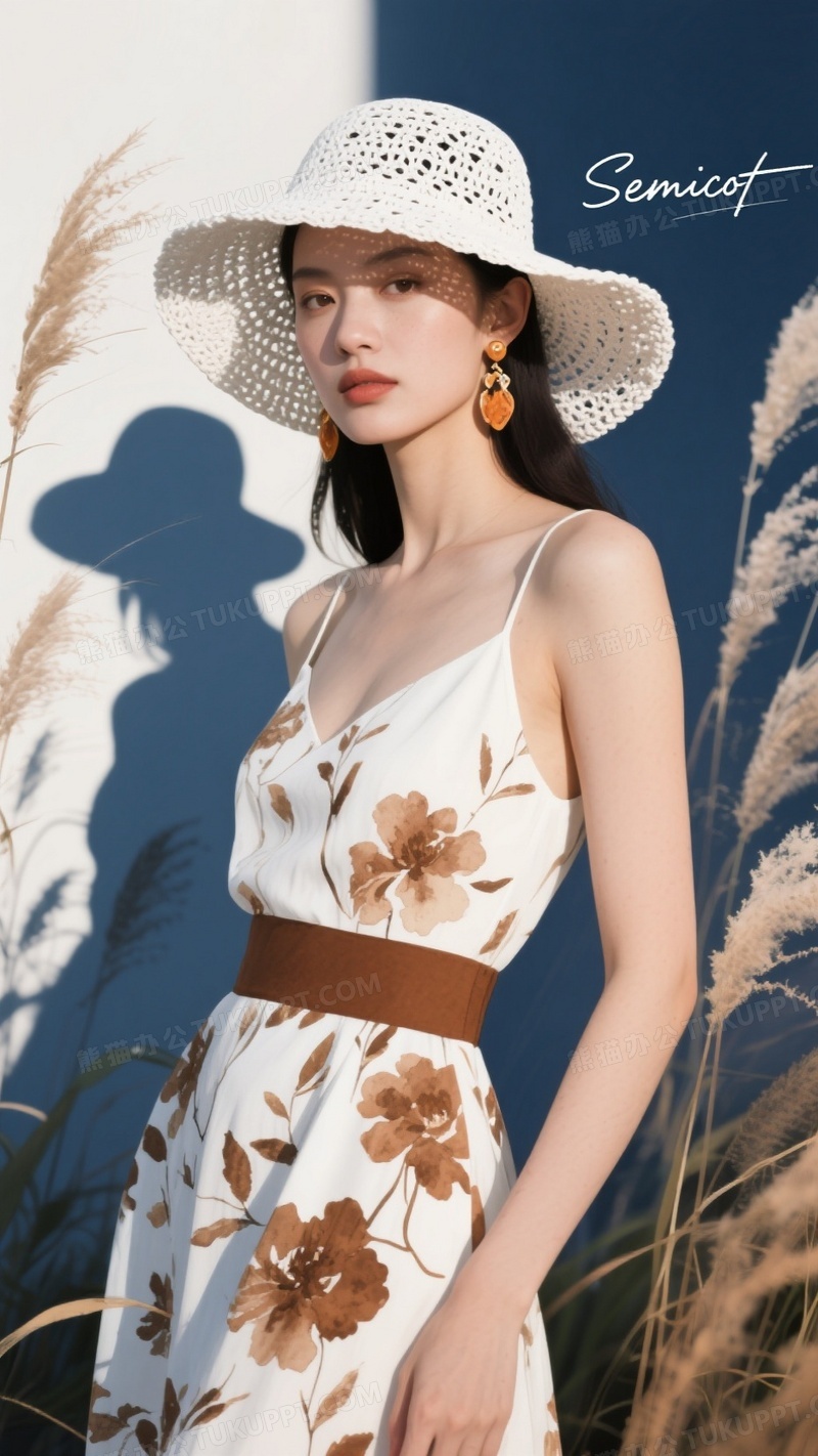 本作品内容为一位带耳环穿休闲高定白底棕色花宽带裙的时尚模特, 格式为 jpg, 大小1 MB, 图片尺寸为936 x 1664, 源文件无水印, 欢迎使用熊猫办公。 如认为平台内容涉嫌侵权,可通过邮件:tousu@tukuppt.com提出书面通知,我们将及时处理。