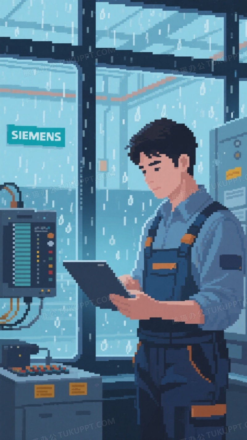 本作品内容为一位穿着工装的25岁电气工程师用笔记本在厂房西门子plc自动化生产线调试, 格式为 jpg, 大小1 MB, 图片尺寸为936 x 1664, 源文件无水印, 欢迎使用熊猫办公。 如认为平台内容涉嫌侵权,可通过邮件:tousu@tukuppt.com提出书面通知,我们将及时处理。