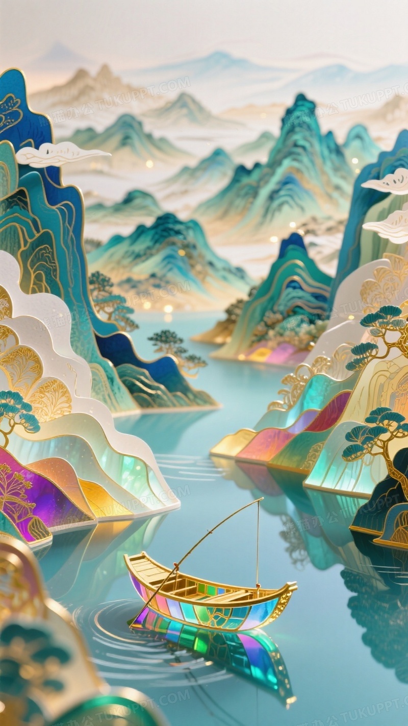 本作品内容为穆夏纸雕风格中国山水画, 格式为 jpg, 大小1 MB, 图片尺寸为936 x 1664, 源文件无水印, 欢迎使用熊猫办公。 如认为平台内容涉嫌侵权,可通过邮件:tousu@tukuppt.com提出书面通知,我们将及时处理。