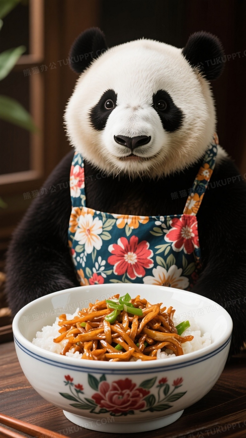 本作品内容为熊猫带着花色围裙做鱼香肉丝盖饭, 格式为 jpg, 大小1 MB, 图片尺寸为936 x 1664, 源文件无水印, 欢迎使用熊猫办公。 如认为平台内容涉嫌侵权,可通过邮件:tousu@tukuppt.com提出书面通知,我们将及时处理。