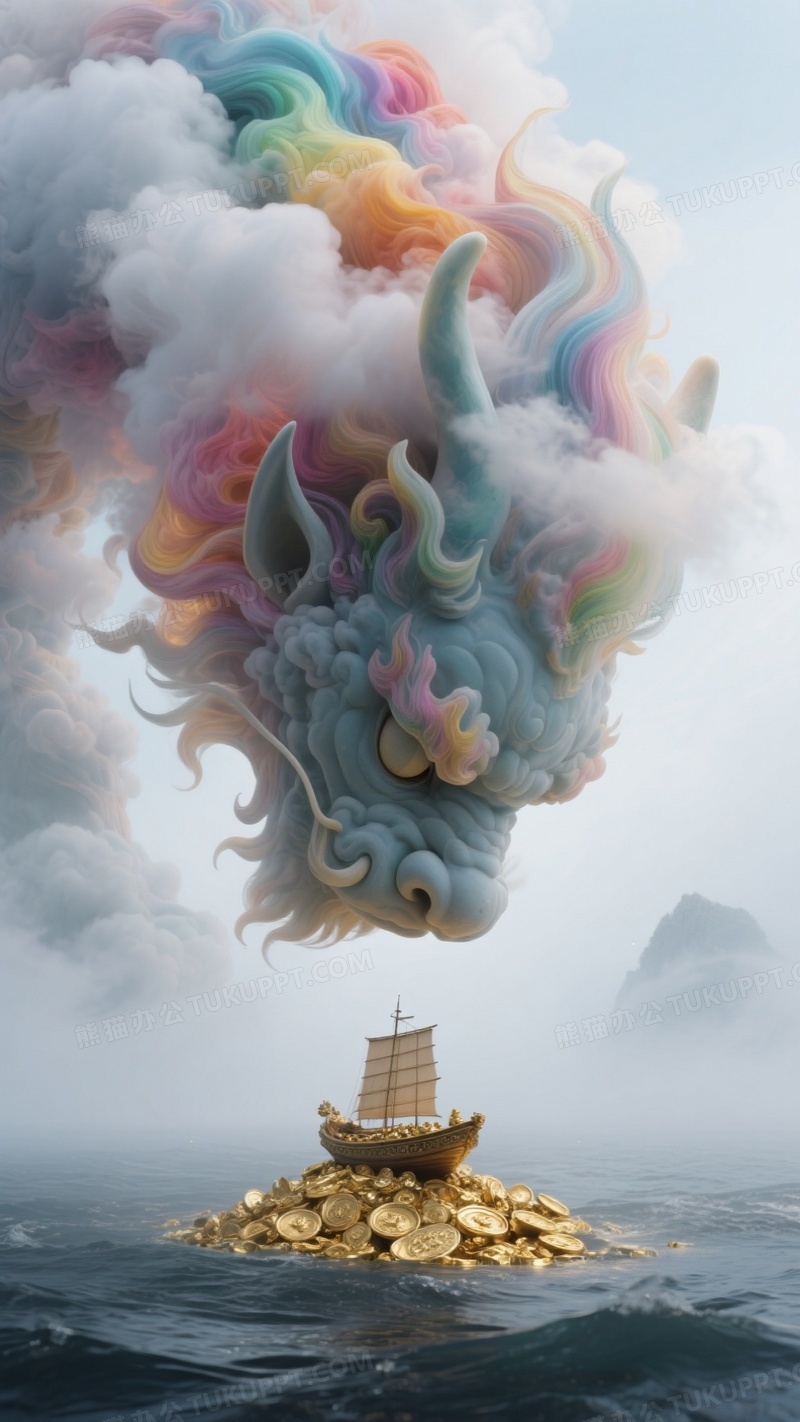 本作品内容为虚无中一张由彩色云和雾凝聚而成的神话貔貅正面轮廓, 格式为 jpg, 大小1 MB, 图片尺寸为936 x 1664, 源文件无水印, 欢迎使用熊猫办公。 如认为平台内容涉嫌侵权,可通过邮件:tousu@tukuppt.com提出书面通知,我们将及时处理。