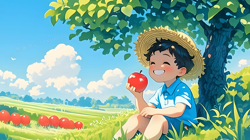 本作品内容为卡通漫画小男孩坐在树下吃苹果插画, 格式为 jpg, 大小3 MB, 图片尺寸为2912 x 1632, 源文件无水印, 欢迎使用熊猫办公。 如认为平台内容涉嫌侵权,可通过邮件:tousu@tukuppt.com提出书面通知,我们将及时处理。