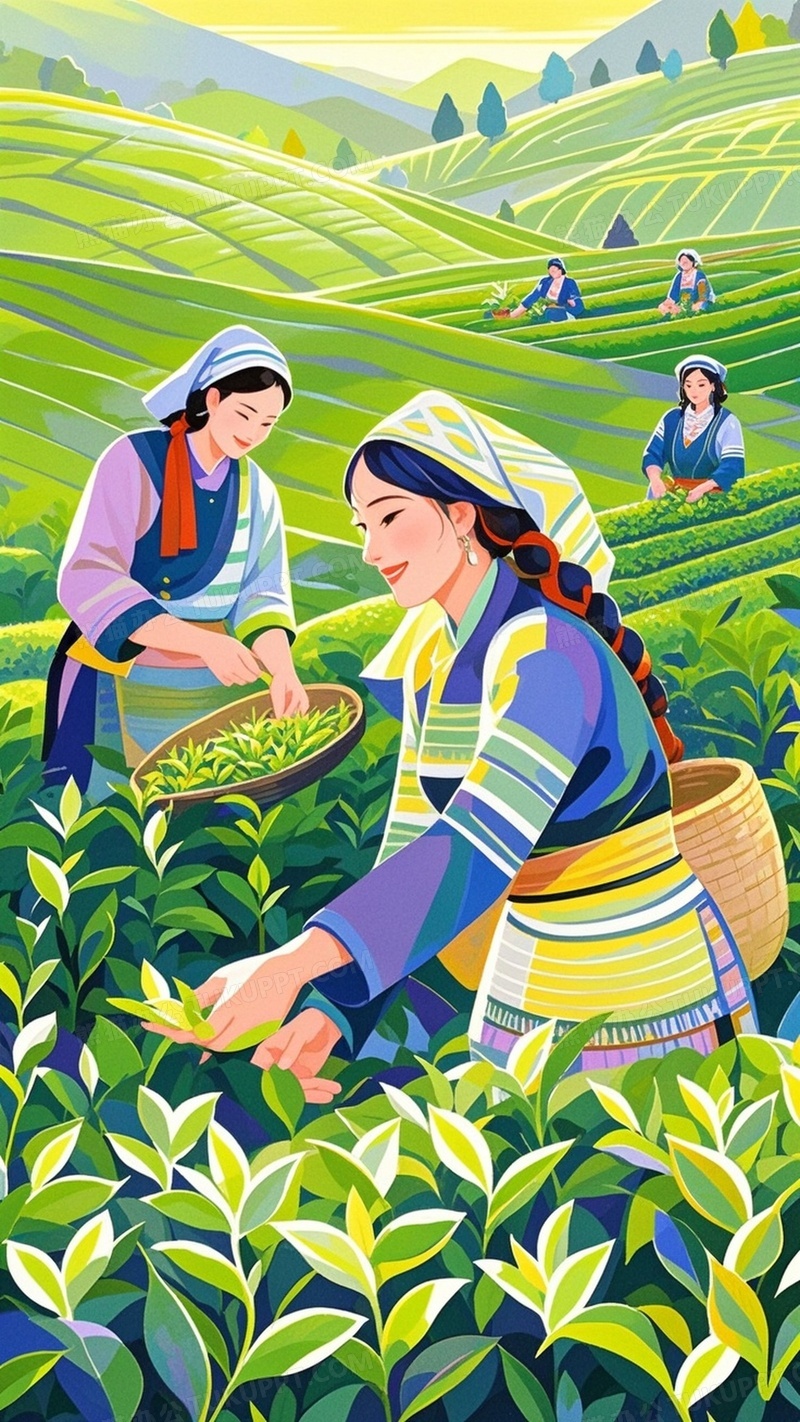 本作品内容为一群少数民族妇女在茶园里采茶, 格式为 jpg, 大小1 MB, 图片尺寸为1152 x 2048, 源文件无水印, 欢迎使用熊猫办公。 如认为平台内容涉嫌侵权,可通过邮件:tousu@tukuppt.com提出书面通知,我们将及时处理。