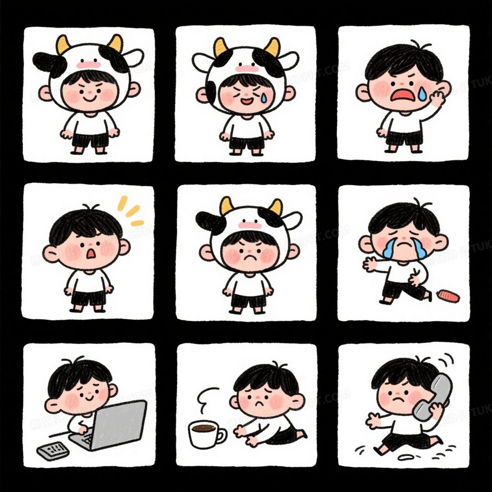本作品内容为表情包手绘插画绘本风格, 格式为 jpg, 大小1 MB, 图片尺寸为1536 x 1536, 源文件无水印, 欢迎使用熊猫办公。 如认为平台内容涉嫌侵权,可通过邮件:tousu@tukuppt.com提出书面通知,我们将及时处理。