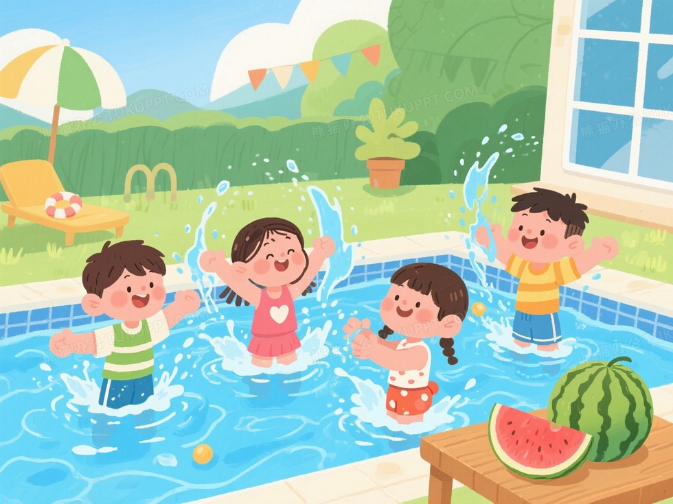本作品内容为4个小朋友一起在泳池里玩水, 格式为 jpg, 大小1 MB, 图片尺寸为1472 x 1104, 源文件无水印, 欢迎使用熊猫办公。 如认为平台内容涉嫌侵权,可通过邮件:tousu@tukuppt.com提出书面通知,我们将及时处理。