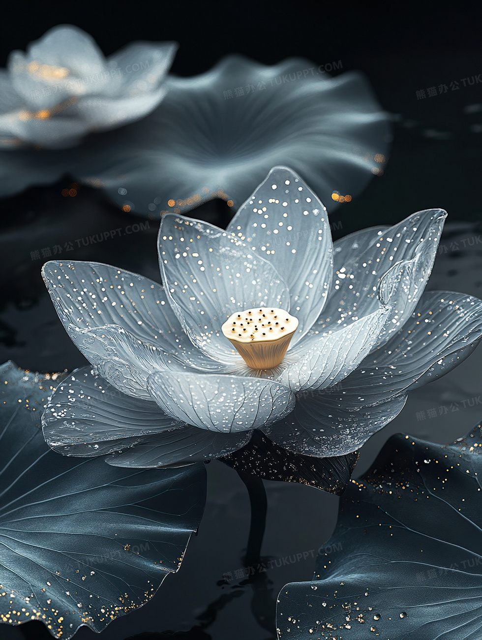 本作品内容为虚拟唯美黑金睡莲植物插画, 格式为 jpg, 大小3 MB, 图片尺寸为1856 x 2464, 源文件无水印, 欢迎使用熊猫办公。 如认为平台内容涉嫌侵权,可通过邮件:tousu@tukuppt.com提出书面通知,我们将及时处理。