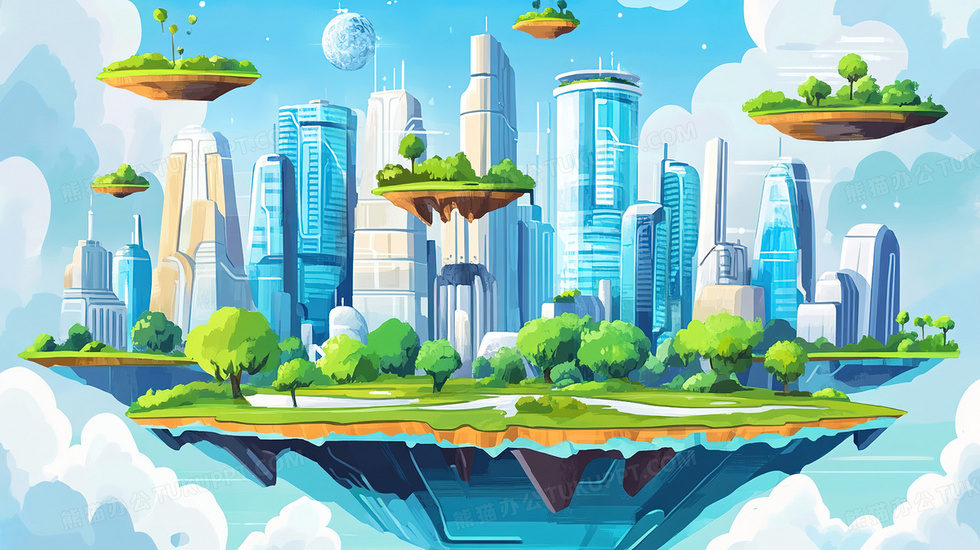 首页 > 插画 > 科技艺术 > 卡通漫画 > 未来科技虚拟城市悬空岛屿城市插画