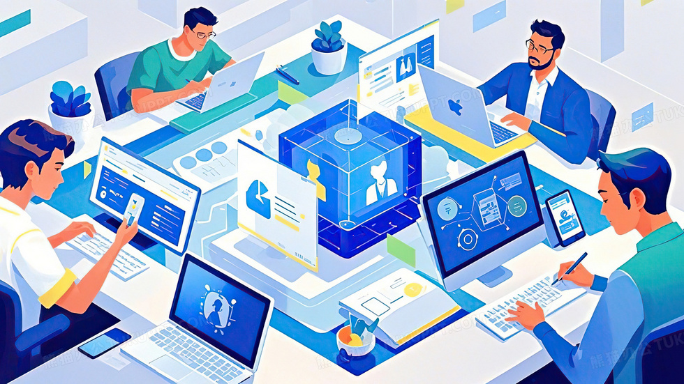 本作品内容为电脑工作职员商务智能科技办公插画, 格式为 jpg, 大小4 MB, 图片尺寸为3072 x 1728, 源文件无水印, 欢迎使用熊猫办公。 如认为平台内容涉嫌侵权,可通过邮件:tousu@tukuppt.com提出书面通知,我们将及时处理。