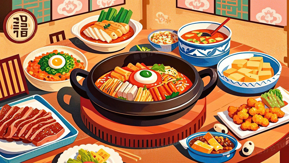 本作品内容为韩国韩式韩国文化部队火锅韩式料理插画, 格式为 jpg, 大小5 MB, 图片尺寸为3072 x 1728, 源文件无水印, 欢迎使用熊猫办公。 如认为平台内容涉嫌侵权,可通过邮件:tousu@tukuppt.com提出书面通知,我们将及时处理。