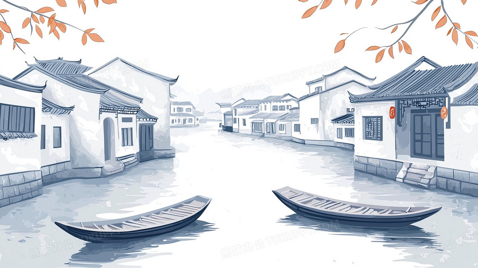 本作品内容为古韵幽静江南水乡古镇河流风光插画, 格式为 jpg, 大小2 MB, 图片尺寸为2912 x 1632, 源文件无水印, 欢迎使用熊猫办公。 如认为平台内容涉嫌侵权,可通过邮件:tousu@tukuppt.com提出书面通知,我们将及时处理。