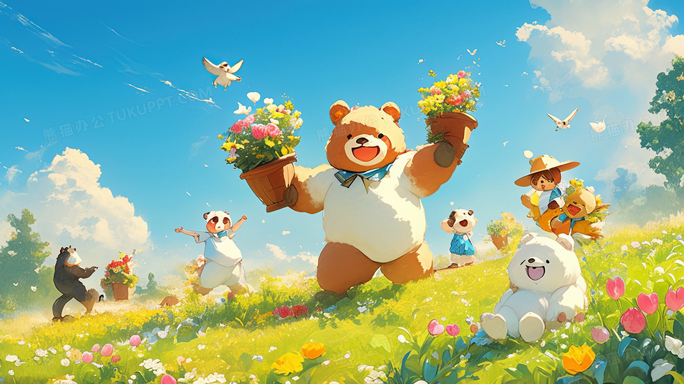 本作品内容为小熊草地可爱小动物梦幻插画, 格式为 jpg, 大小3 MB, 图片尺寸为2912 x 1632, 源文件无水印, 欢迎使用熊猫办公。 如认为平台内容涉嫌侵权,可通过邮件:tousu@tukuppt.com提出书面通知,我们将及时处理。