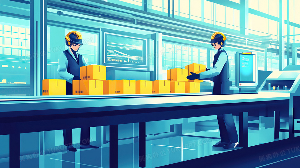 本作品内容为智能工厂打包环节插画, 格式为 jpg, 大小3 MB, 图片尺寸为2912 x 1632, 源文件无水印, 欢迎使用熊猫办公。 如认为平台内容涉嫌侵权,可通过邮件:tousu@tukuppt.com提出书面通知,我们将及时处理。