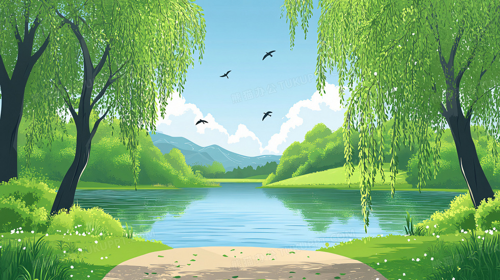 本作品内容为春天柳树燕子美丽风景插画, 格式为 jpg, 大小7 MB, 图片尺寸为2912 x 1632, 源文件无水印, 欢迎使用熊猫办公。 如认为平台内容涉嫌侵权,可通过邮件:tousu@tukuppt.com提出书面通知,我们将及时处理。