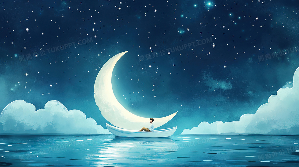 本作品内容为卡通治愈月亮小船背景, 格式为 jpg, 大小3 MB, 图片尺寸为2912 x 1632, 作品中背景图片无需修改, 源文件无水印,可以直接使用, 欢迎使用熊猫办公。 如认为平台内容涉嫌侵权,可通过邮件:tousu@tukuppt.com提出书面通知,我们将及时处理。
