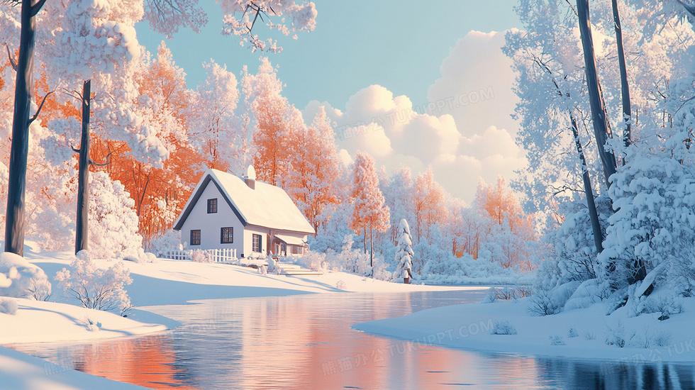 本作品内容为冬天雪地小屋四季风景风光插画, 格式为 jpg, 大小4 MB, 图片尺寸为2912 x 1632, 源文件无水印, 欢迎使用熊猫办公。 如认为平台内容涉嫌侵权,可通过邮件:tousu@tukuppt.com提出书面通知,我们将及时处理。