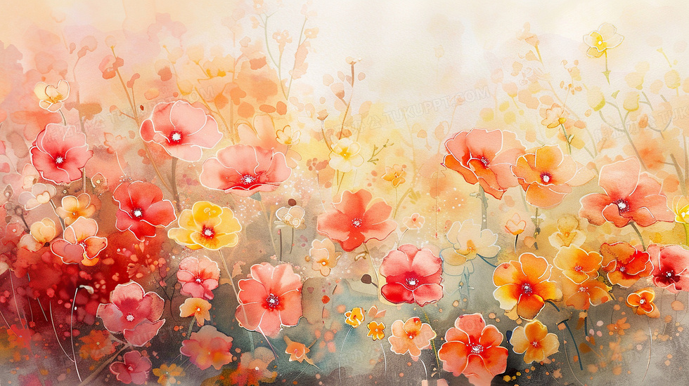 本作品内容为小清新水彩渐变花卉背景, 格式为 jpg, 大小4 MB, 图片尺寸为2912 x 1632, 作品中背景图片无需修改, 源文件无水印,可以直接使用, 欢迎使用熊猫办公。 如认为平台内容涉嫌侵权,可通过邮件:tousu@tukuppt.com提出书面通知,我们将及时处理。