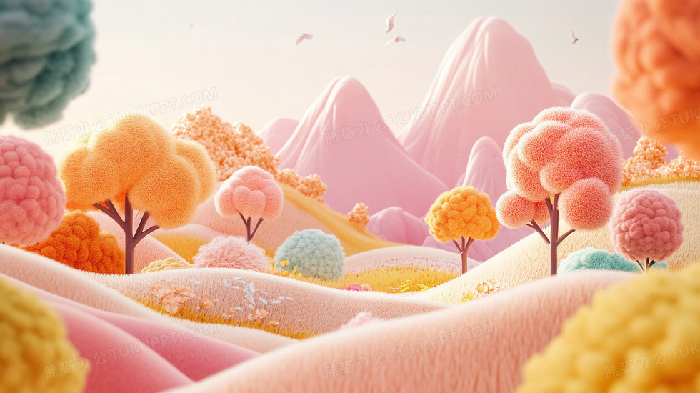 本作品内容为C4D毛绒质感风景野外风光花草树木背景, 格式为 jpg, 大小3 MB, 图片尺寸为2912 x 1632, 作品中背景图片无需修改, 源文件无水印,可以直接使用, 欢迎使用熊猫办公。 如认为平台内容涉嫌侵权,可通过邮件:tousu@tukuppt.com提出书面通知,我们将及时处理。