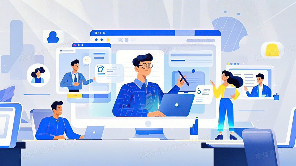 本作品内容为线上远程办公智能科技商务办公插画, 格式为 jpg, 大小4 MB, 图片尺寸为3072 x 1728, 源文件无水印, 欢迎使用熊猫办公。 如认为平台内容涉嫌侵权,可通过邮件:tousu@tukuppt.com提出书面通知,我们将及时处理。