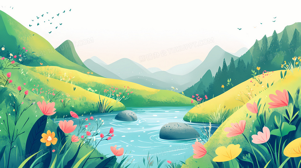本作品内容为森林中的小溪河流插画, 格式为 jpg, 大小4 MB, 图片尺寸为2912 x 1632, 源文件无水印, 欢迎使用熊猫办公。 如认为平台内容涉嫌侵权,可通过邮件:tousu@tukuppt.com提出书面通知,我们将及时处理。