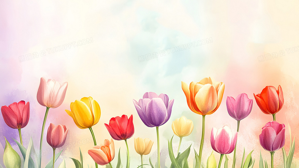 本作品内容为简约清新水彩国风植物花朵郁金香背景, 格式为 jpg, 大小2 MB, 图片尺寸为2912 x 1632, 作品中背景图片无需修改, 源文件无水印,可以直接使用, 欢迎使用熊猫办公。 如认为平台内容涉嫌侵权,可通过邮件:tousu@tukuppt.com提出书面通知,我们将及时处理。