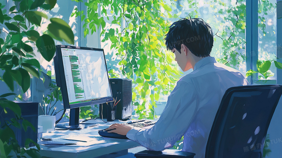本作品内容为办公室电脑前办公的男职员插画, 格式为 jpg, 大小4 MB, 图片尺寸为2912 x 1632, 源文件无水印, 欢迎使用熊猫办公。 如认为平台内容涉嫌侵权,可通过邮件:tousu@tukuppt.com提出书面通知,我们将及时处理。