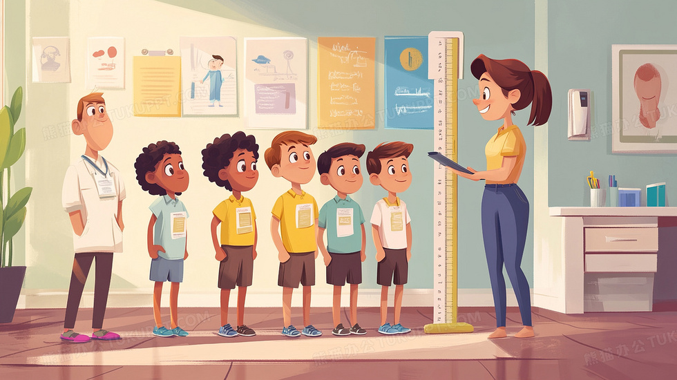 本作品内容为老师在体检室给孩子测量身高卡通插画, 格式为 jpg, 大小3 MB, 图片尺寸为2912 x 1632, 源文件无水印, 欢迎使用熊猫办公。 如认为平台内容涉嫌侵权,可通过邮件:tousu@tukuppt.com提出书面通知,我们将及时处理。