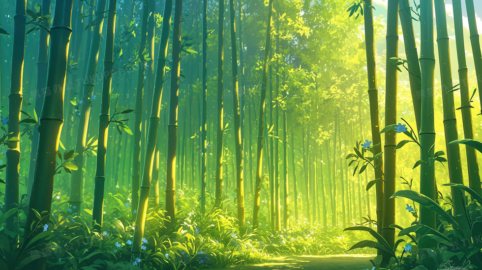 唯美春天翠绿竹林风景插画