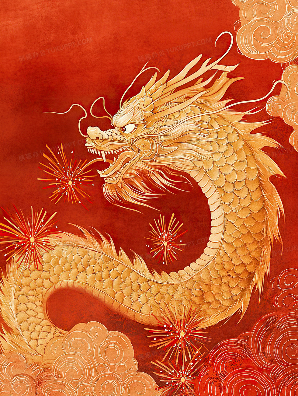 本作品内容为红色中国风生肖龙新年竖版插画, 格式为 jpg, 大小9 MB, 图片尺寸为1856 x 2464, 源文件无水印, 欢迎使用熊猫办公。 如认为平台内容涉嫌侵权,可通过邮件:tousu@tukuppt.com提出书面通知,我们将及时处理。