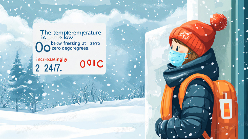 本作品内容为零下温度天气戴围巾保暖的小女孩插画, 格式为 jpg, 大小5 MB, 图片尺寸为2912 x 1632, 源文件无水印, 欢迎使用熊猫办公。 如认为平台内容涉嫌侵权,可通过邮件:tousu@tukuppt.com提出书面通知,我们将及时处理。